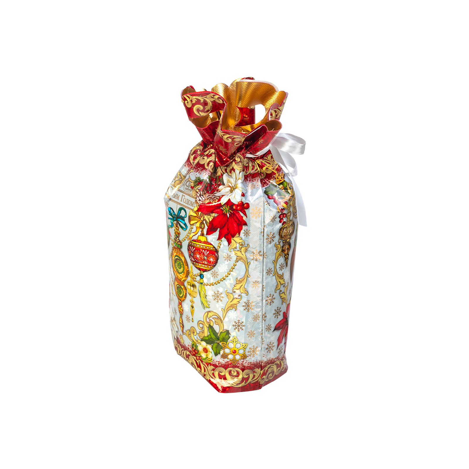 Интересный вариант новогоднего подарка – «Мешок Время чудес». Отлично подойдет на подарок в 2026 году с символом Лошадь. Внутри такого презента находится кондитерский набор весом 900 граммов.